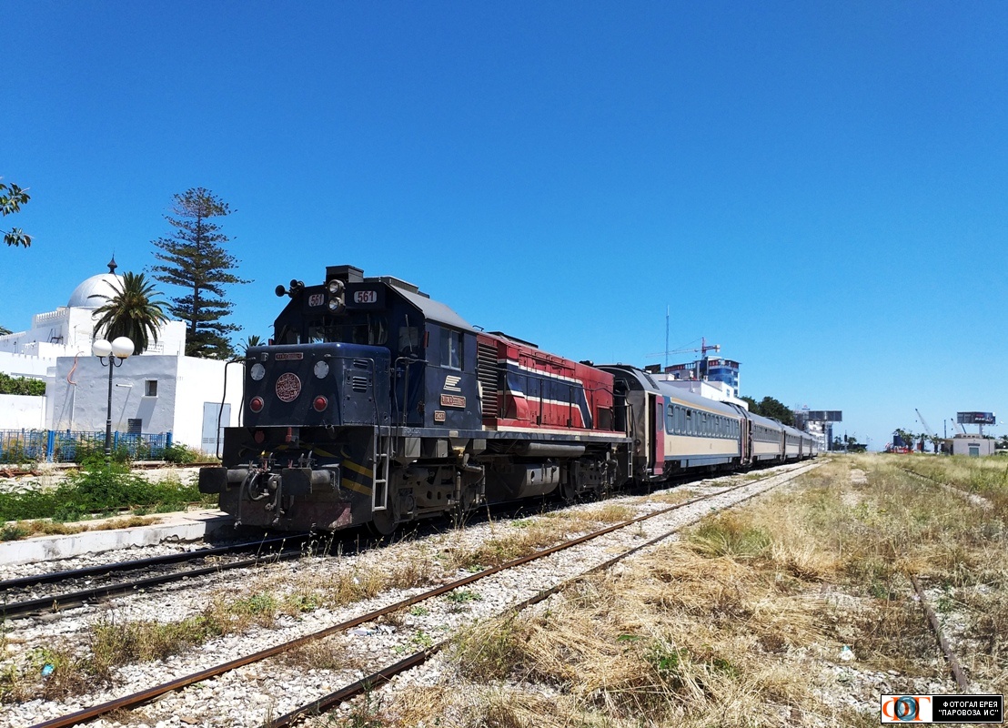 | Тепловоз GM-561 с поездом Сус - Тунис на станции Сус, Тунис Автор: ВЧДЗР-5 | Фото сделано 1.VI.2019, опубликовано 7.VI.2019.