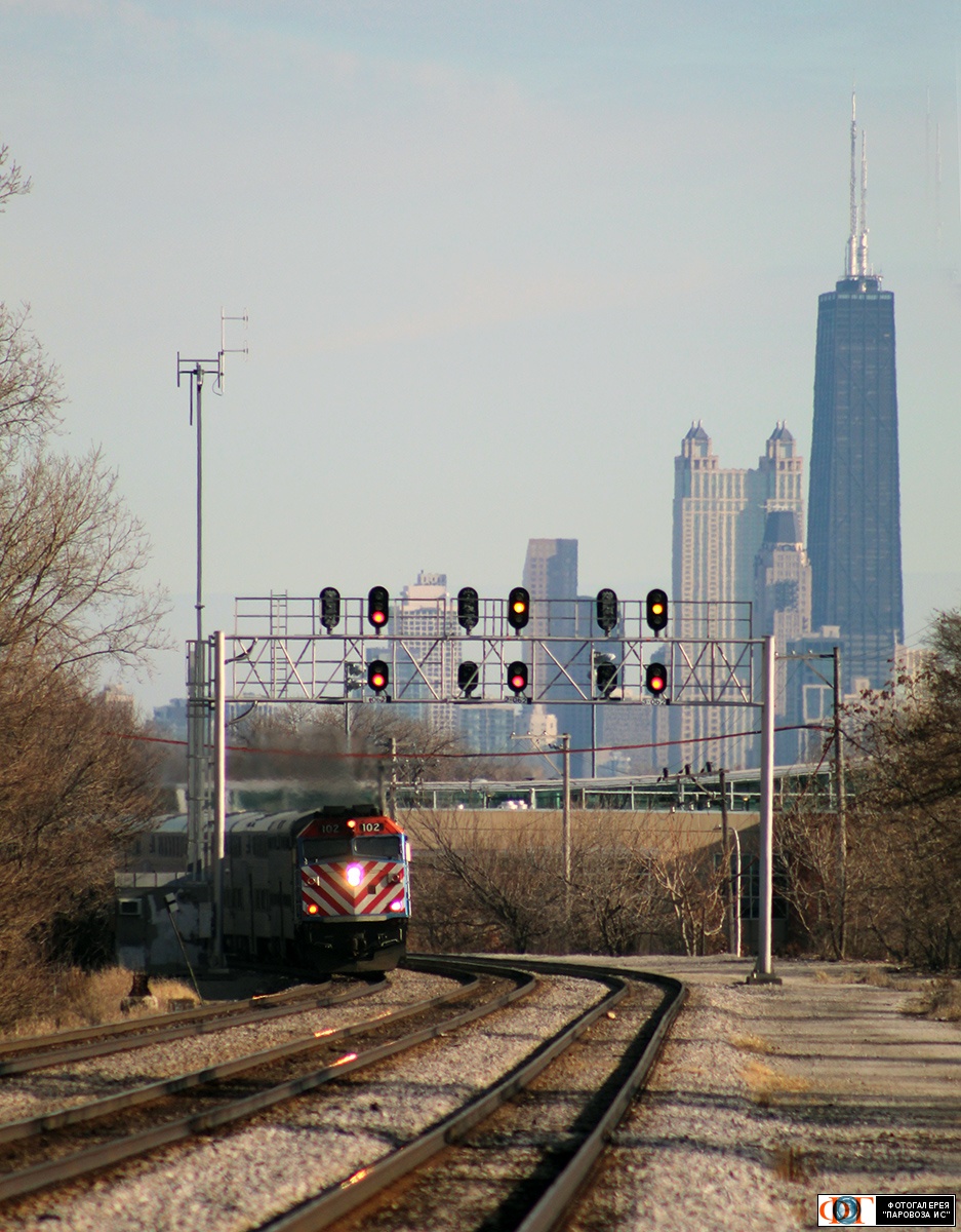 | Тепловоз F40PH-102 с поездом компании "Метра". Участок Вестерн авеню (Western ave.) - Гранд/Сисеро (Grand/Cicero). Линия Милуоки-Дистрикт-Вест. Чикаго, США/Иллинойс Автор: Роман | Фото сделано 5.XII.2019, опубликовано 8.XII.2019.
