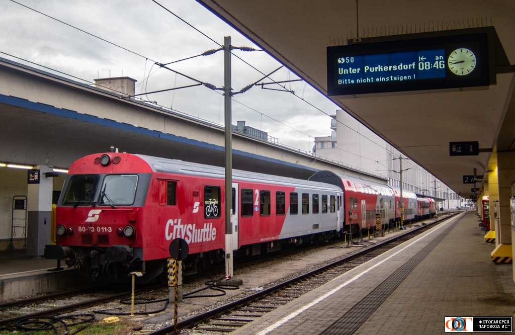 | Типичный представитель Kamelbuckel (верблюжий горб) с головным вагоном 80-73 011-3 на станции ст. Вена-Западная (Wien Westbahnhof). Сленговое название ситуации, когда к двухэтажным вагонам цепляют одноэтажный вагон с кабиной, Австрия Автор: froptking | Фото сделано 13.I.2020, опубликовано 1.II.2020.