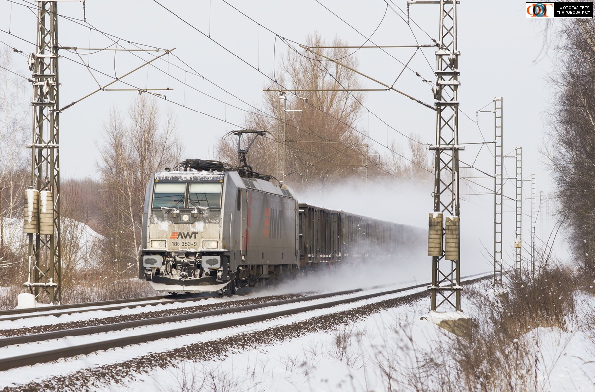 | Электровоз 186.353-9 компании "PKP Cargo International S.A." с грузовым поездом на перегоне Богумин - Острава-Главный вокзал, Чехия Автор: ES499 | Фото сделано 17.I.2021, опубликовано 11.II.2021.