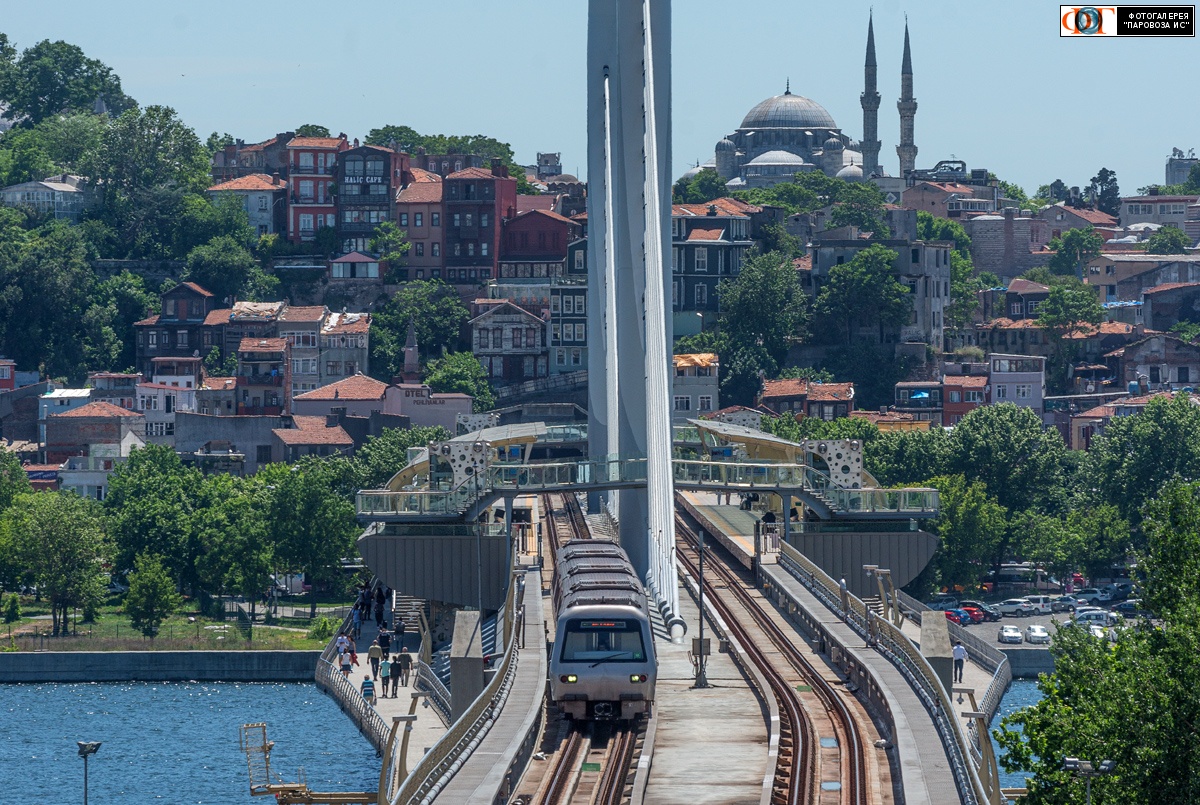 | Метропоезд стамбульского метрополитена на линии 2, мост через бухту Золотой Рог, Турция Автор: Прикарпатский партизан | Фото сделано 31.V.2018, опубликовано 30.XI.2021.