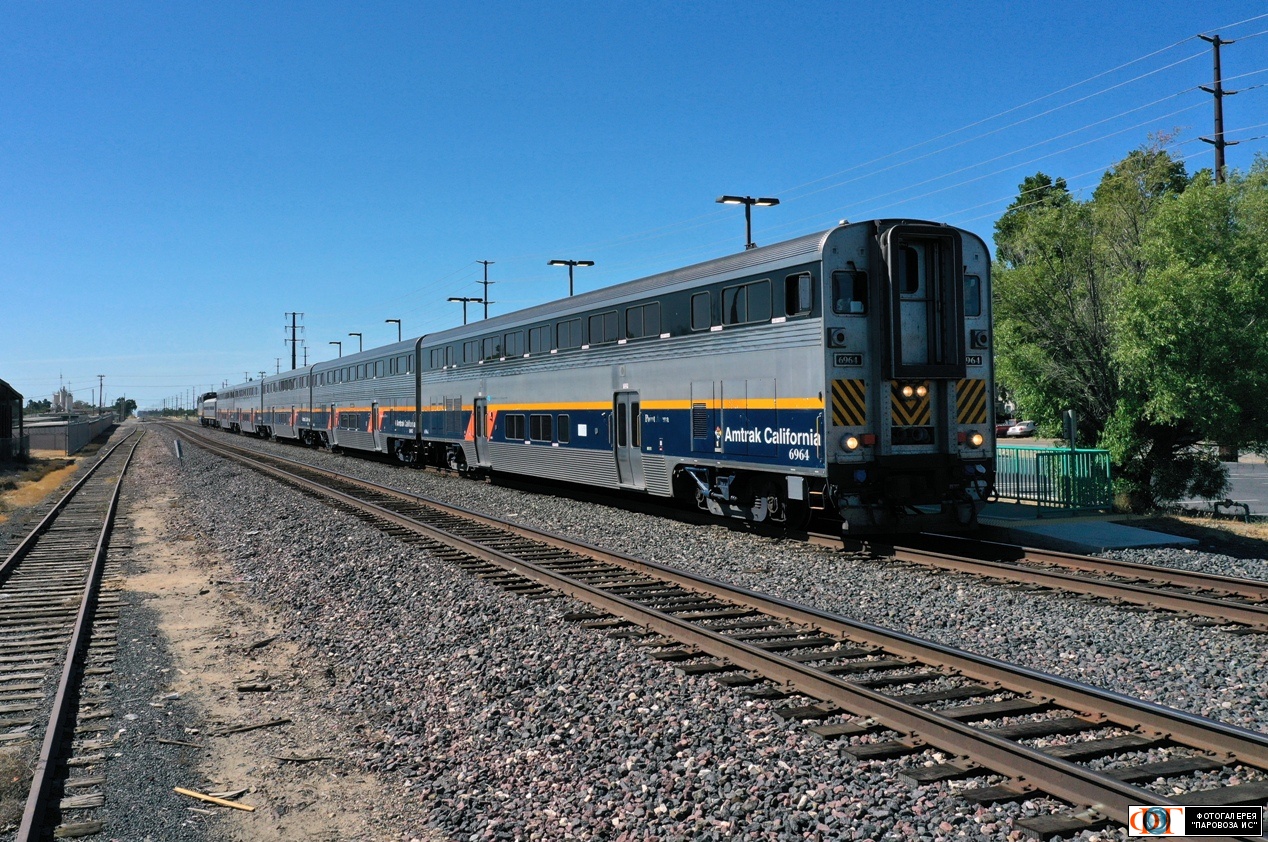 | Пассажирский поезд компании Амтрак, Оаклэнд - Бэйкерсфилд на станции Терлок-Денэйр, США/Калифорния Автор: Ярмолюк Сергей | Фото сделано 29.V.2022, опубликовано 2.VI.2022.