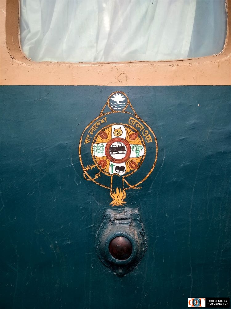 | Эмблема железных дорог Восточного Пакистана (ныне Бангладеш) на служебном вагоне (1676 мм) на станции Ишварди (Ishurdi), Бангладеш Автор: Aleksandr | Фото сделано 21.I.2023, опубликовано 31.I.2023.
