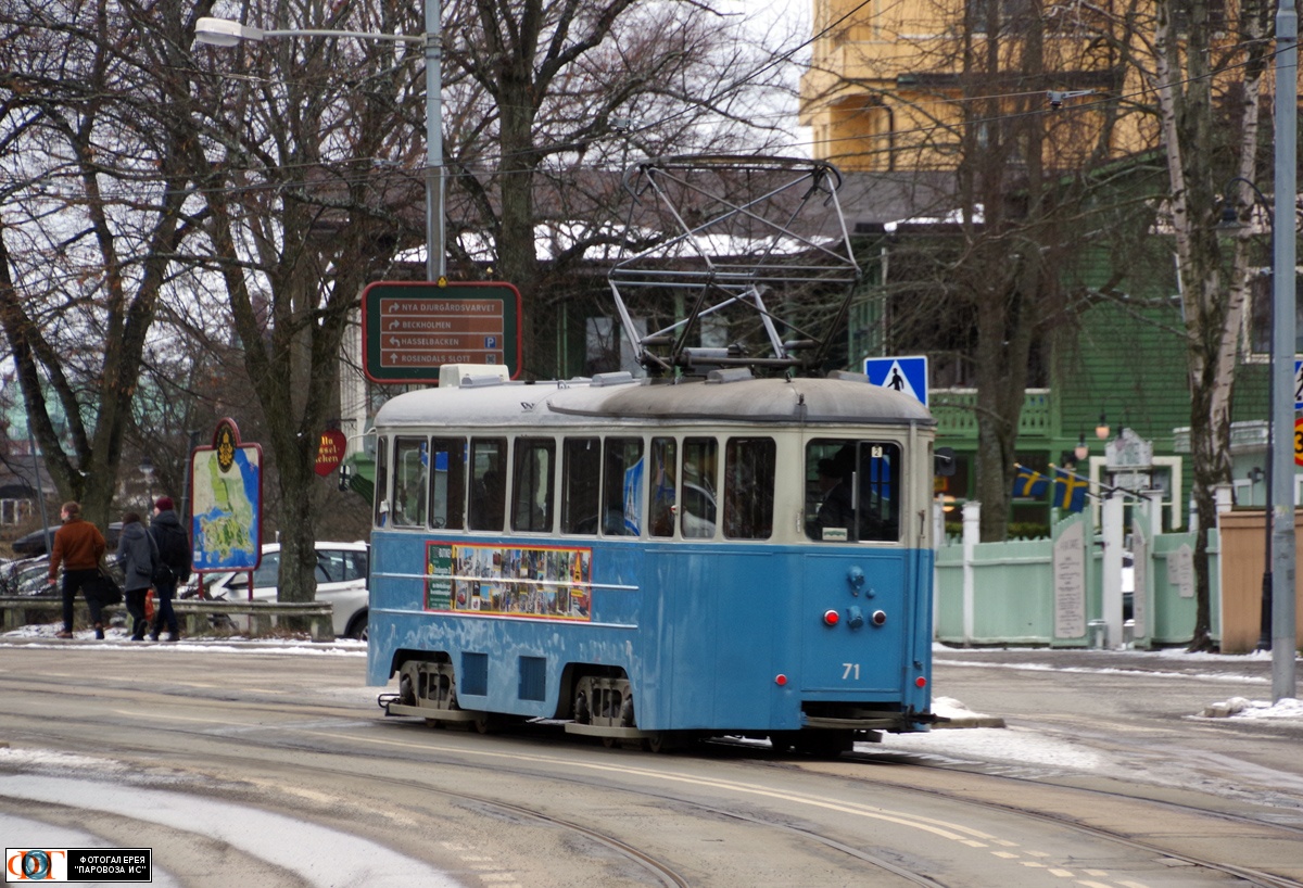 | Трамвай ASEA A25G № 71, ул. Юргордсваген (Djurgårdsvägen), Стокгольм, Швеция Автор: tallart | Фото сделано 26.II.2023, опубликовано 20.III.2023.
