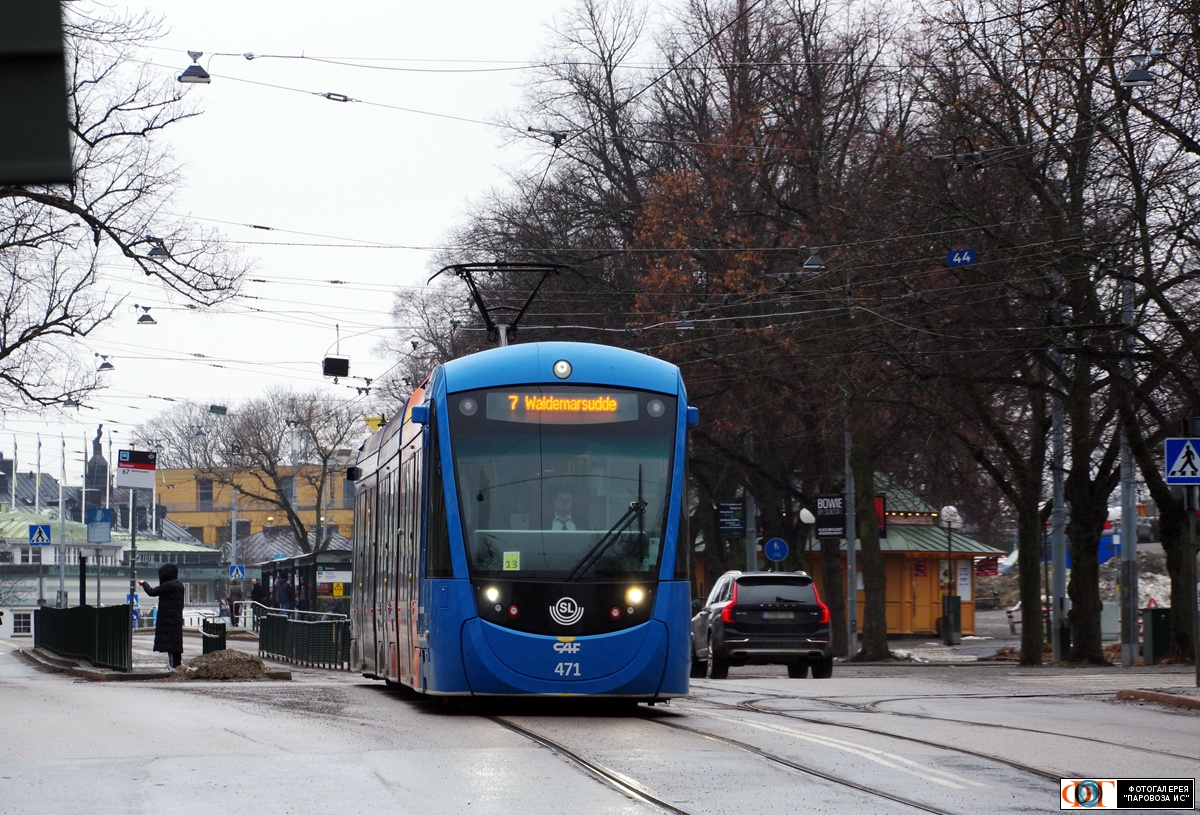 | Трамвай CAF Urbos AXL №471, ул. Юргордсваген (Djurgårdsvägen), Стокгольм, Швеция Автор: tallart | Фото сделано 20.III.2023, опубликовано 4.IV.2023.