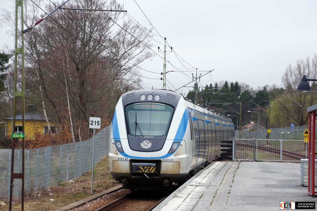 | Электропоезд X60-6101, о.п. Ёстертелье (Östertälje), перегон Сёдертелье хамн (Södertälje hamn) - Тумба (Tumba), Сёдертелье, лён Стокгольм, Швеция Автор: tallart | Фото сделано 25.IV.2023, опубликовано 16.V.2023.