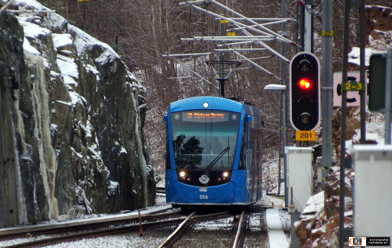 | Трамвай CAF Urbos AXL №556, ст. "Багеби" (Baggeby) Лидингёбана, муниципалитет Лидингё, Швеция Автор: tallart | Фото сделано 23.I.2023, опубликовано 17.V.2023.