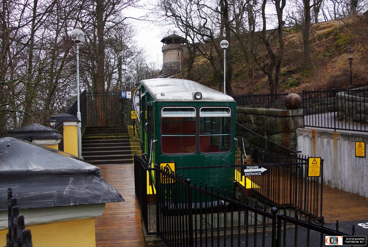 | Вагон Скансенского фуникулёра на нижней станции. Музей под открытым небом Скансен (Skansen) в Стокгольме, Швеция Автор: tallart | Фото сделано 20.III.2023, опубликовано 31.VII.2023.