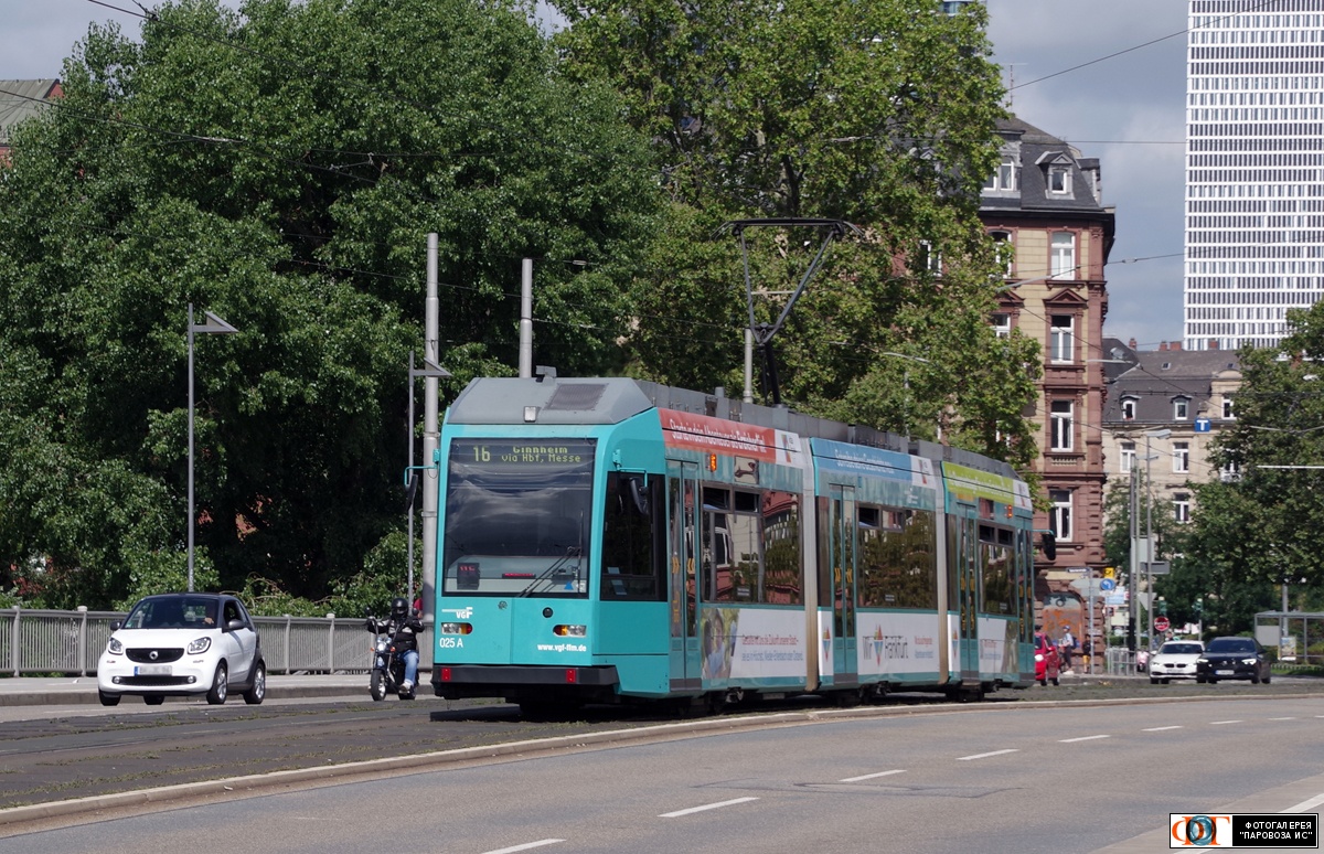 | Трамвай Duewag R № 025, мост Фриденсбрюке (Friedensbrücke), Франкфурт-на-Майне, Германия/Гессен Автор: tallart | Фото сделано 5.VIII.2023, опубликовано 27.XI.2023.