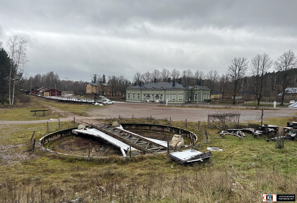 | Поворотный круг и бывший вокзал, ст. Порвоо (Porvoo), Уусимаа, Финляндия Автор: Priit | Фото сделано 14.XI.2023, опубликовано 4.XII.2023.