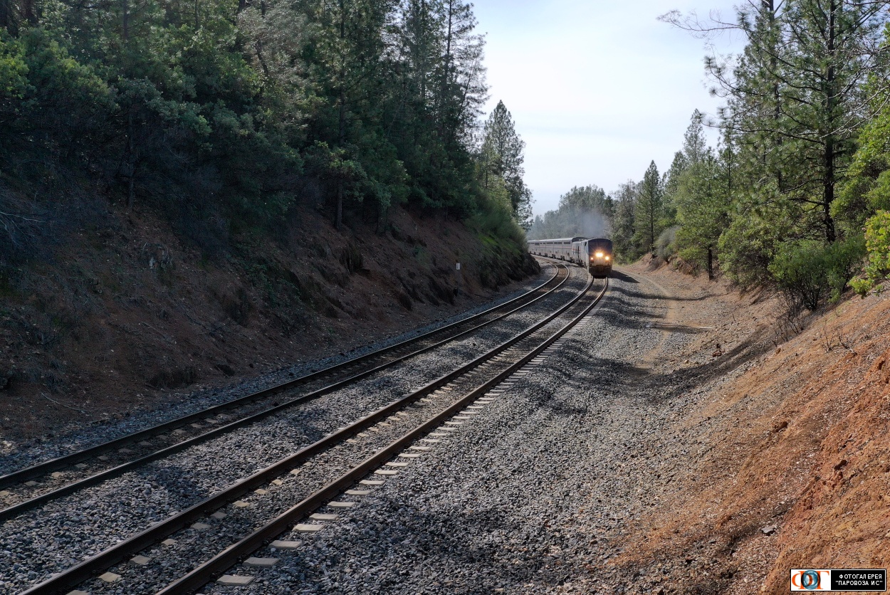 | Пассажирский поезд Эмервилл - Чикаго в горах Съерра-Невада, перегон Аубурн - Колфакс, США/Калифорния Автор: Ярмолюк Сергей | Фото сделано 23.II.2024, опубликовано 26.II.2024.