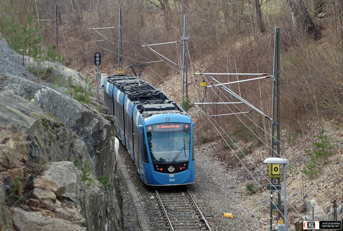 | Трамвай CAF Urbos AXL №554, ст. "Багеби" (Baggeby) Лидингёбана, муниципалитет Лидингё (Lidingö), Швеция Автор: tallart | Фото сделано 4.III.2024, опубликовано 8.III.2024.