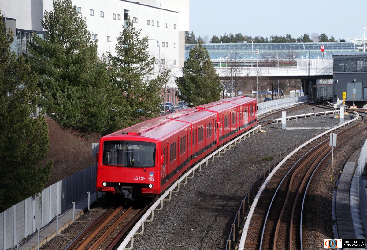 | Метропоезд Valmet M100 № 163, перегон Растила - Вуосаари (Rastila - Vuosaari), Хельсинки, Финляндия Автор: tallart | Фото сделано 28.III.2024, опубликовано 7.IV.2024.