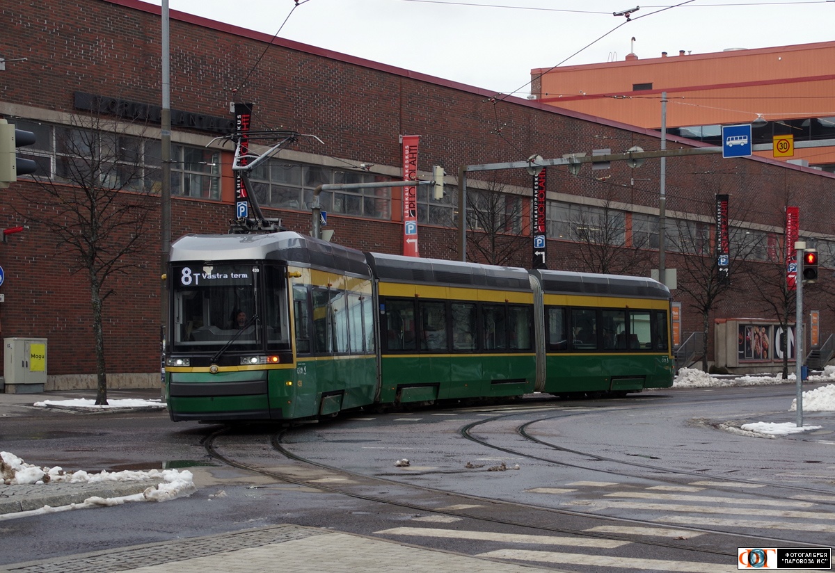 | Трамвай Škoda ForCity Smart Artic MLNRV3 № 439, перекрёсток Итямеренкату и Лянсисатаманкату (Itämeraekatu - Satamankatu), Хельсинки, Финляндия Автор: tallart | Фото сделано 6.IV.2024, опубликовано 25.VI.2024.
