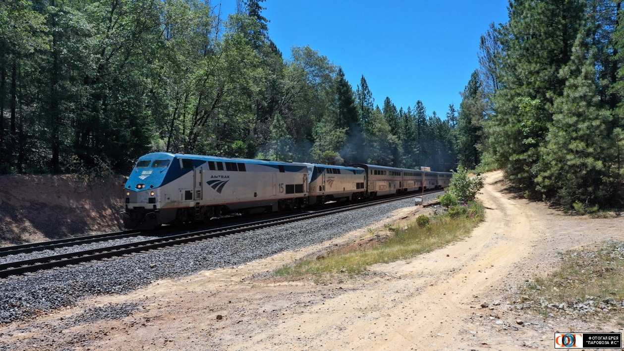 | Тепловозы комапнии Амтрак GE Genesis P42DC #15 и #124 с пассажирским поездом Эмеривил - Чикаго на перегоне Колфакс - Траки, США/Калифорния Автор: Ярмолюк Сергей | Фото сделано 27.VI.2024, опубликовано 30.VI.2024.