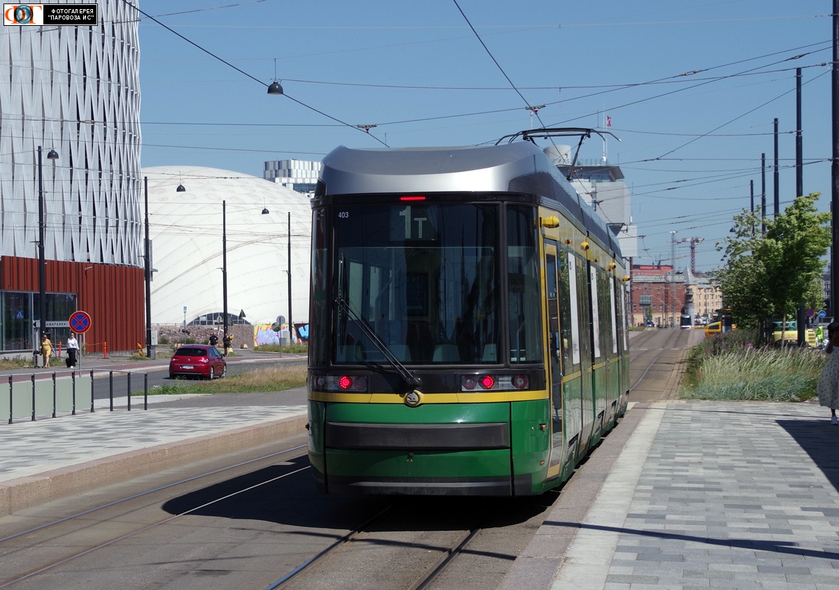 | Трамвай Škoda ForCity Smart Artic MLNRV3 № 403, ул. Тююненмеренкату (Tyynenmerenkatu), Хельсинки, Финляндия Автор: tallart | Фото сделано 26.VI.2024, опубликовано 10.VII.2024.