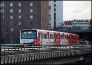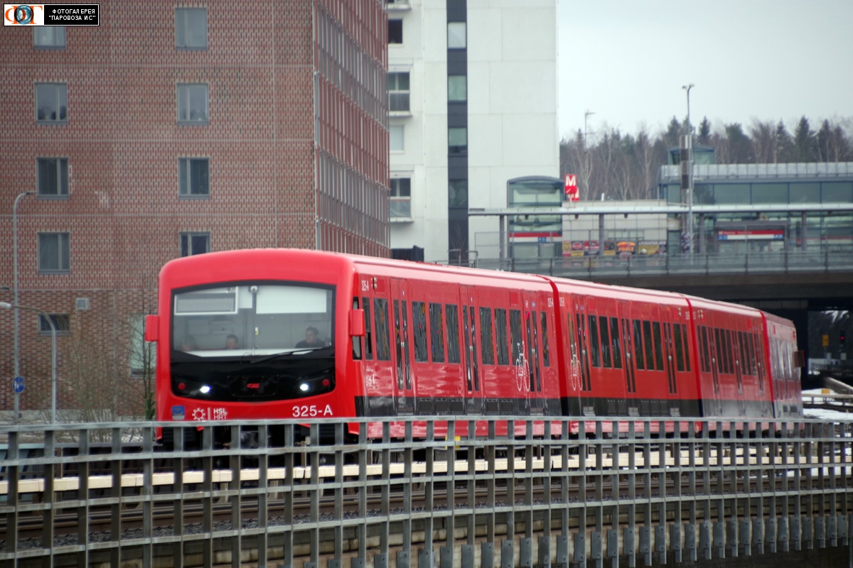 | Метропоезд CAF M300 № 325, мост Вуосаари (Vuosaaren silta), перегон Растила - Пуотила (Rastilan metroasema - Puotilan metroasema), Хельсинки, Финляндия Автор: tallart | Фото сделано 24.II.2024, опубликовано 15.VII.2024.