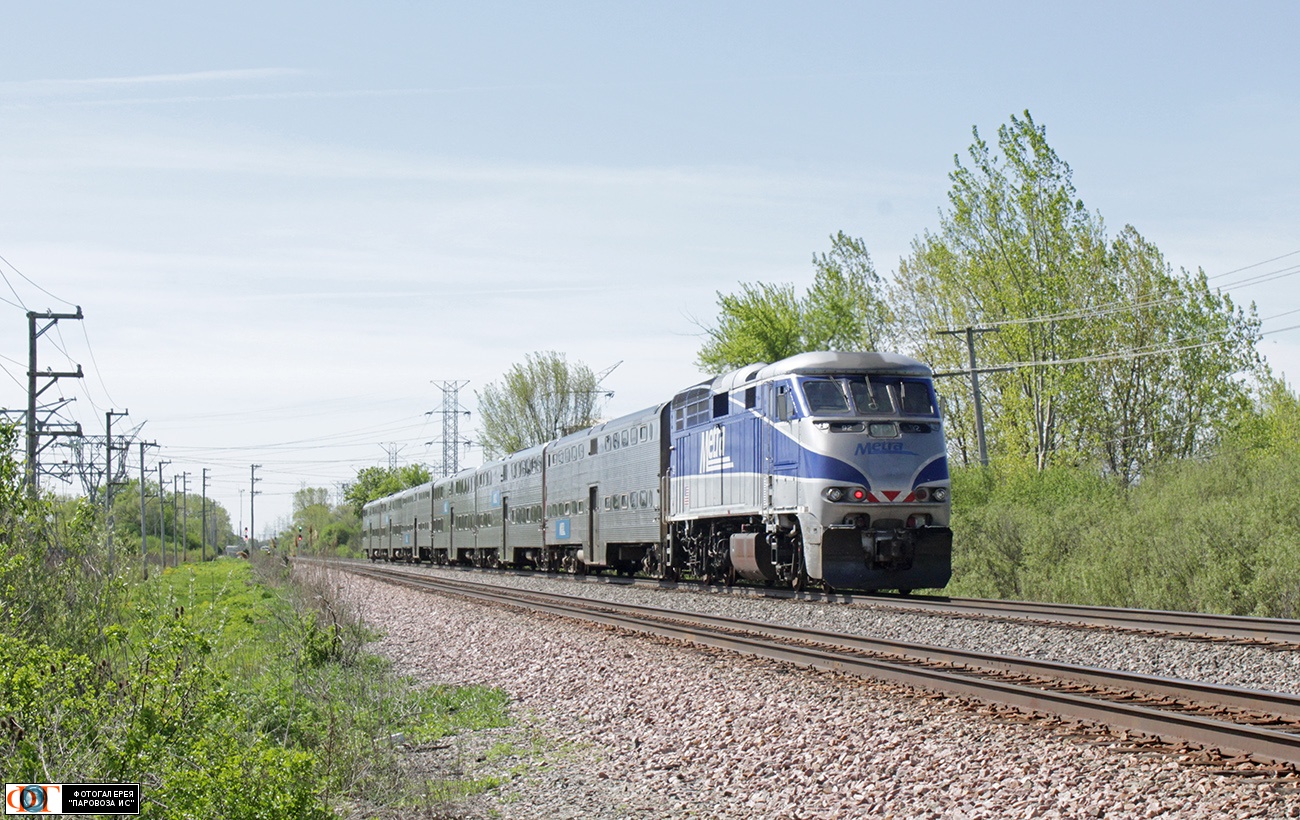 | Тепловоз F59PHI-92 с поездом "Метра". Участок Уилинг - Проспект-Хейтс (Wheeling - Prospect Heights). Уилинг, США/Иллинойс Автор: Роман | Фото сделано 1.V.2024, опубликовано 21.VII.2024.