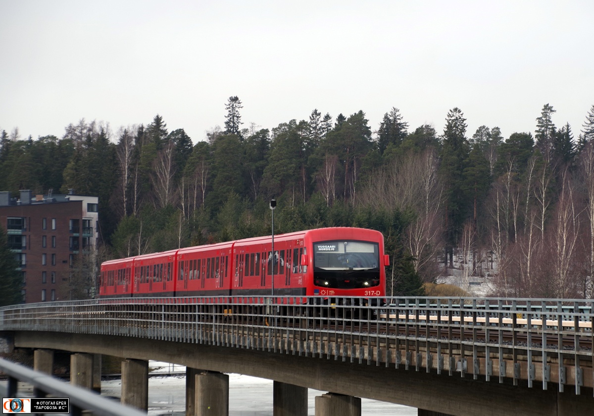 | Метропоезд CAF M300 № 317, мост Вуосаари (Vuosaaren silta), перегон Растила - Пуотила (Rastilan metroasema - Puotilan metroasema), Хельсинки, Финляндия Автор: tallart | Фото сделано 24.II.2024, опубликовано 3.IX.2024.