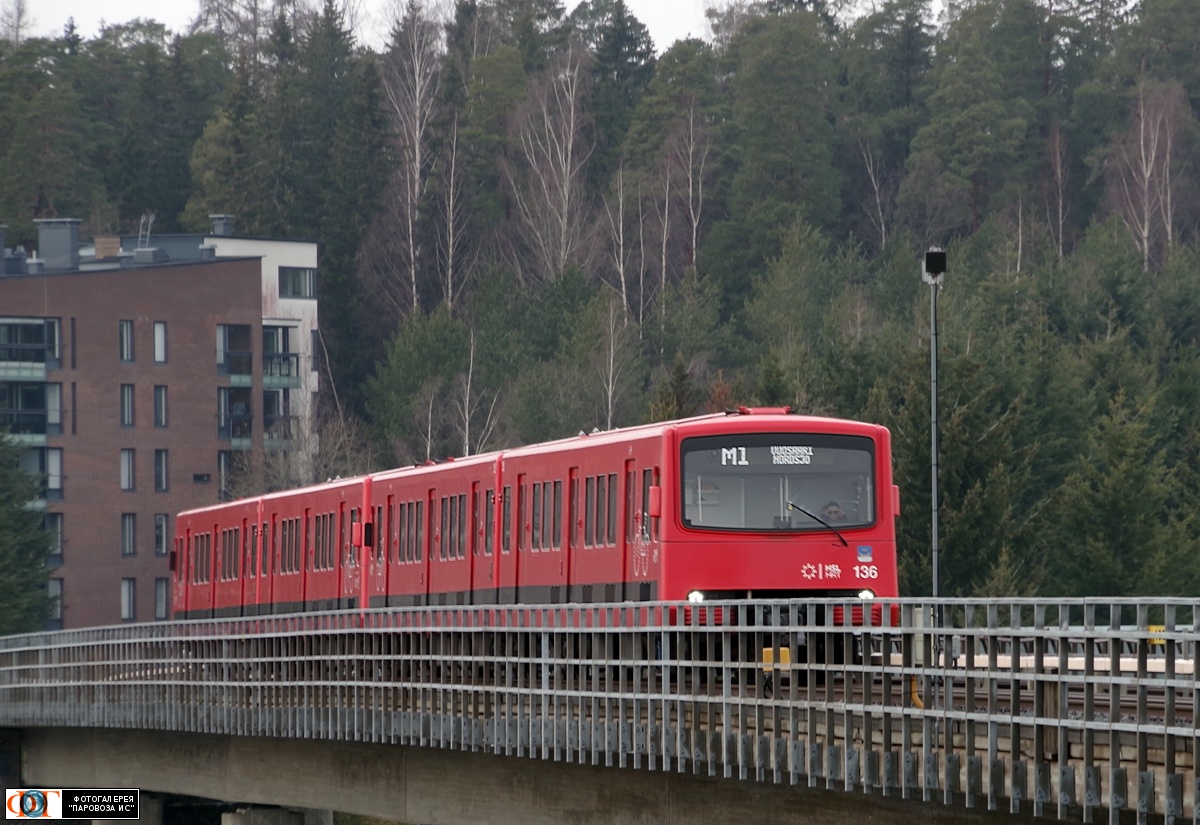 | Метропоезд Valmet M100 № 136, мост Вуосаари (Vuosaaren silta), перегон Растила - Пуотила (Rastilan metroasema - Puotilan metroasema), Хельсинки, Финляндия Автор: tallart | Фото сделано 24.II.2024, опубликовано 4.IX.2024.