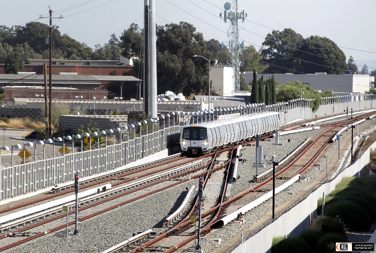 | Электропоезд системы BART. Станция Уорм-Спрингс/Южный Фримонт (Warm Springs/South Fremont). Фримонт, США/Калифорния Автор: Роман | Фото сделано 28.IX.2024, опубликовано 19.X.2024.