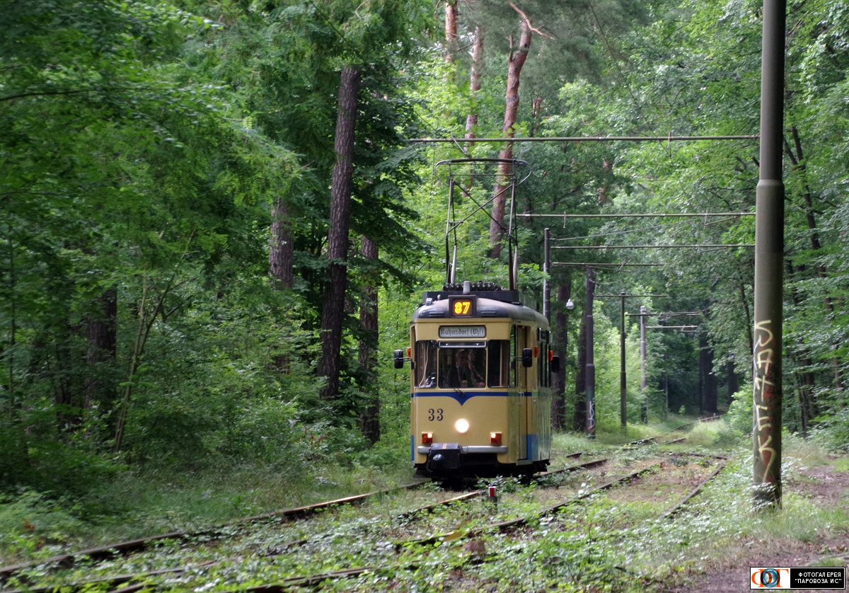 | Трамвай Gotha T57 №33. Разъезд между остановками "Рансдорф" (Rahnsdorf) и "Гётештрассе" (Goethestraße), Германия/Берлин Автор: tallart | Фото сделано 7.VIII.2023, опубликовано 23.X.2024.