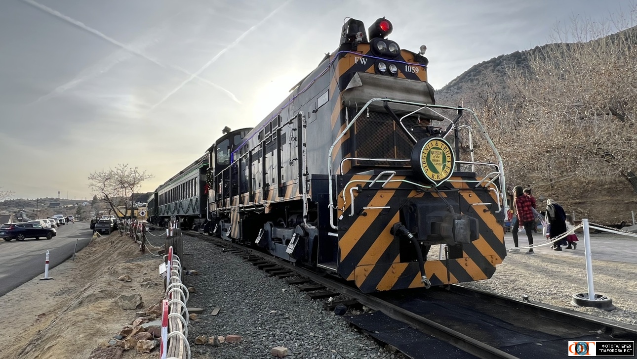 | Тепловоз ALCO S-6, Вирджиния и Траки Рэйлроуд #1059, с туристическим поездом в Вирджиния Сити.