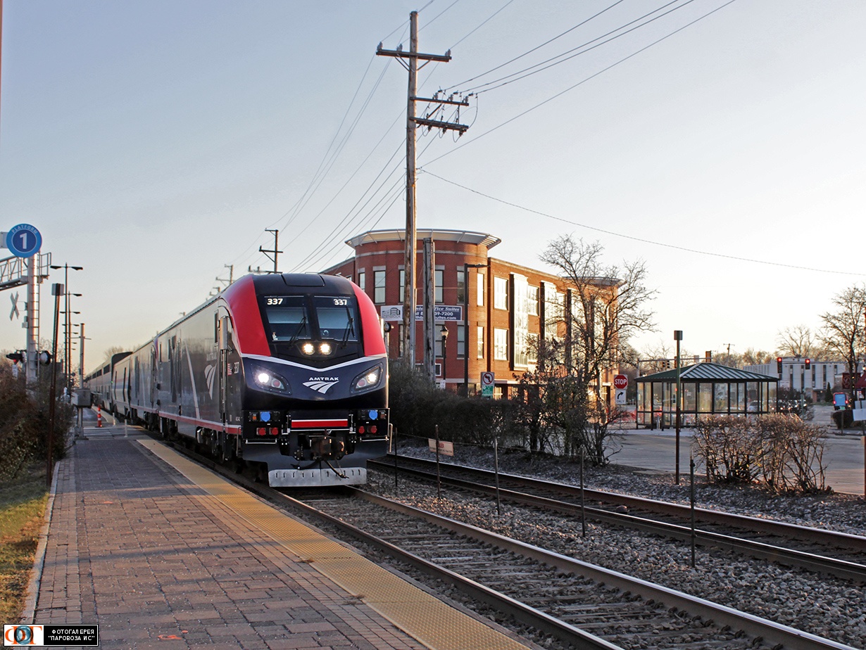 | Тепловоз Siemens Charger ALC-42-337 с поездом #7 компании Амтрак "Empire Builder" Чикаго - Сиэтл/Портлэнд. Платформа Нортбрук (Northbrook Station). Нортбрук, США/Иллинойс Автор: Роман | Фото сделано 8.XII.2024, опубликовано 15.II.2025.