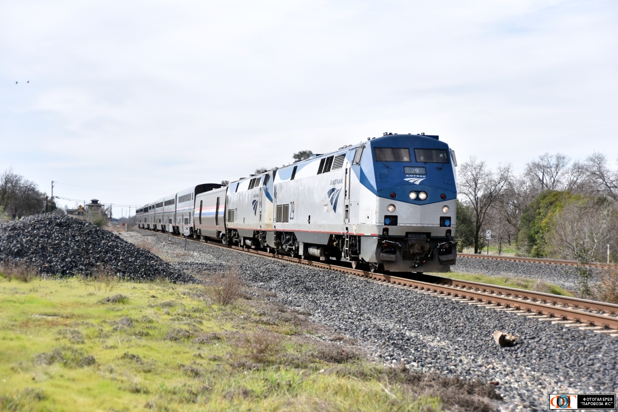 | Тепловозы компании Амтрак GE Genesis P42DC (##29 и 171) с пассажирским поездом на перегоне Роклин - Аубурн, США/Калифорния Автор: Ярмолюк Сергей | Фото сделано 24.II.2025, опубликовано 10.III.2025.
