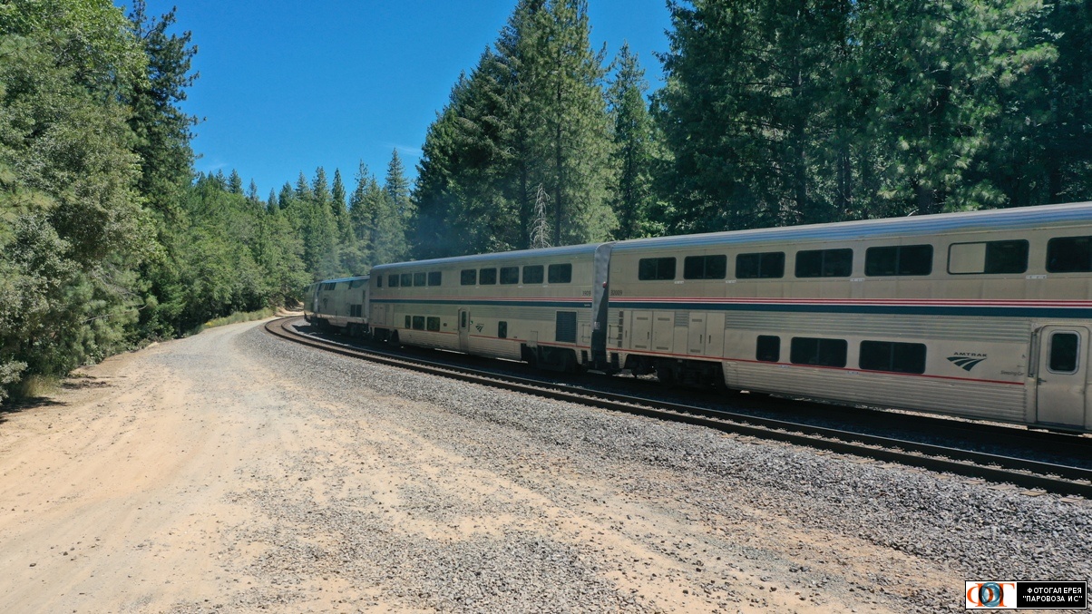 | Пассажирский поезд компании Амтрак в горах Съерра-Невада, США/Калифорния Автор: Ярмолюк Сергей | Фото сделано 27.VI.2024, опубликовано 3.III.2025.