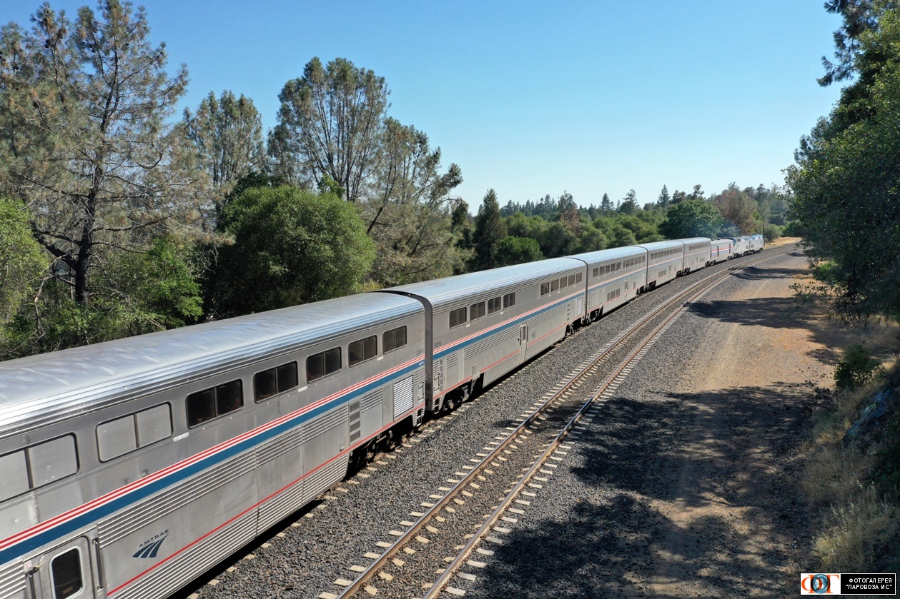 | Пассажирский поезд компании Амтрак на перегоне Колфакс - Аубурн, США/Калифорния Автор: Ярмолюк Сергей | Фото сделано 2.VII.2021, опубликовано 19.III.2025.