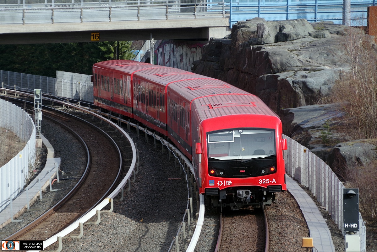 | Метропоезд CAF M300 № 325, перегон Растила - Вуосаари (Rastila - Vuosaari), Хельсинки, Финляндия Автор: tallart | Фото сделано 28.III.2024, опубликовано 20.III.2025.