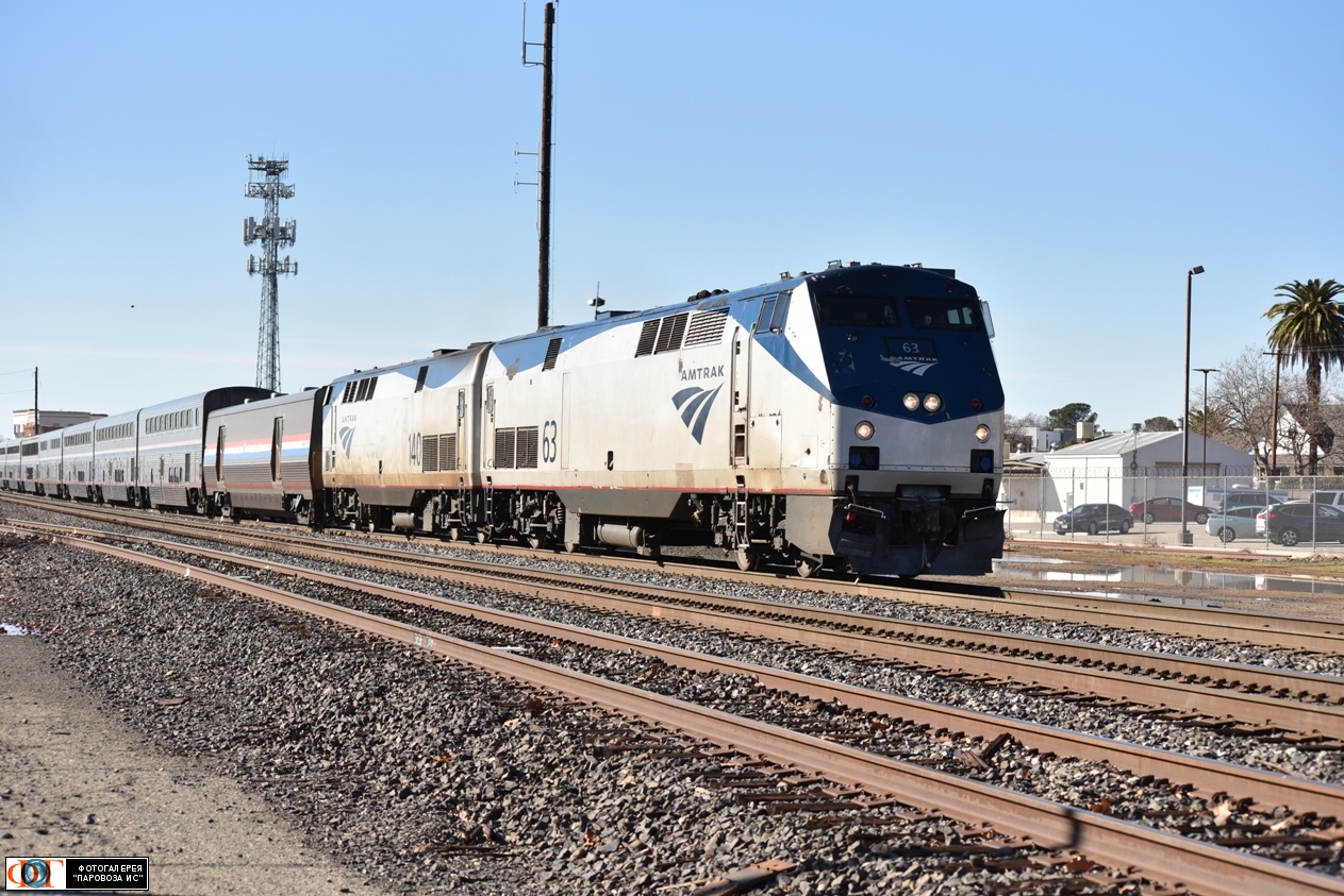 | Тепловозы компании Амтрак Genesis P42DC ## 63 и 140 с пассажирским поездом в западной горловине ст. Роузвилл, США/Калифорния Автор: Ярмолюк Сергей | Фото сделано 11.I.2024, опубликовано 31.III.2025.