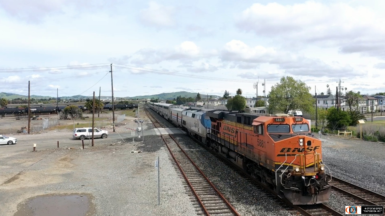 | Тепловоз BNSF #5881 (ES44AC) тянет фирменный пассажирский поезд Амтрак "Coast Starlight" Сиэтл - Лос Анжелес