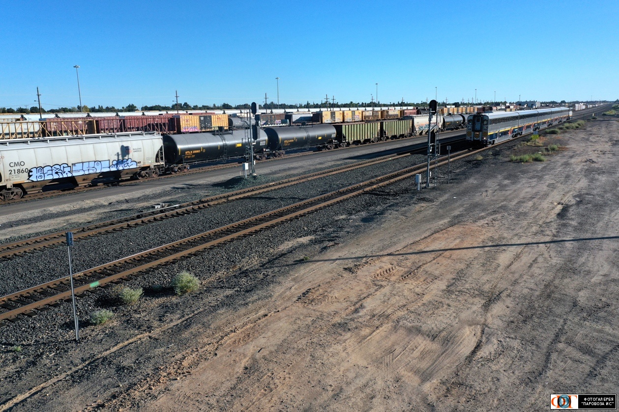 | Станция Роузвилл. Пассажирский поезд Сан Хосе - Аубурн на главном пути и грузовые составы на сортировочных, США/Калифорния Автор: Ярмолюк Сергей | Фото сделано 6.IX.2019, опубликовано 9.IV.2025.