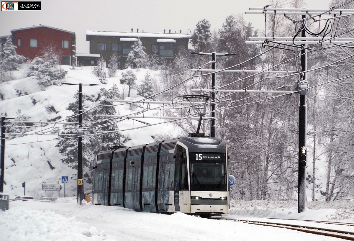 | Трамвай Škoda ForCity Smart Artic Jokeri X54 № 611, ул. Вииларинтие (Viilarintie), Хельсинки (Helsinki), Финляндия Автор: tallart | Фото сделано 30.XII.2023, опубликовано 15.V.2025.