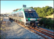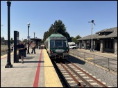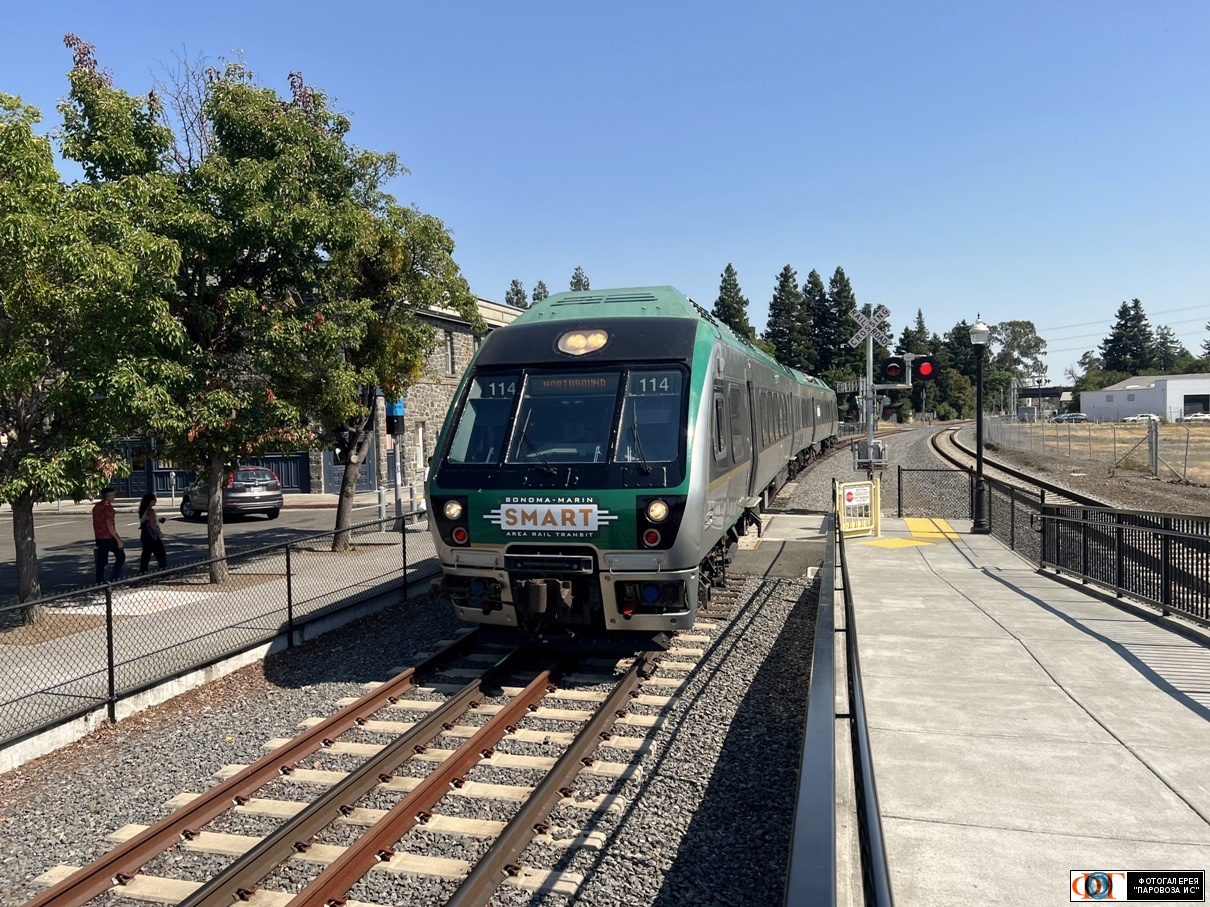 | Дизель-поезд Nippon Sharyo #114 компании SMART сообщением Ларкспёр - Уиндзор на станции Санта Роза, США/Калифорния Автор: Ярмолюк Сергей | Фото сделано 12.VII.2025, опубликовано 23.VIII.2025.