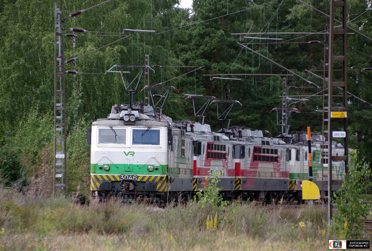 | Сплотка электровозов во главе с Sr1-3046, ст. Котка (Kotka), Кюменлааксо, Финляндия Автор: tallart | Фото сделано 11.VIII.2024, опубликовано 20.VII.2025.