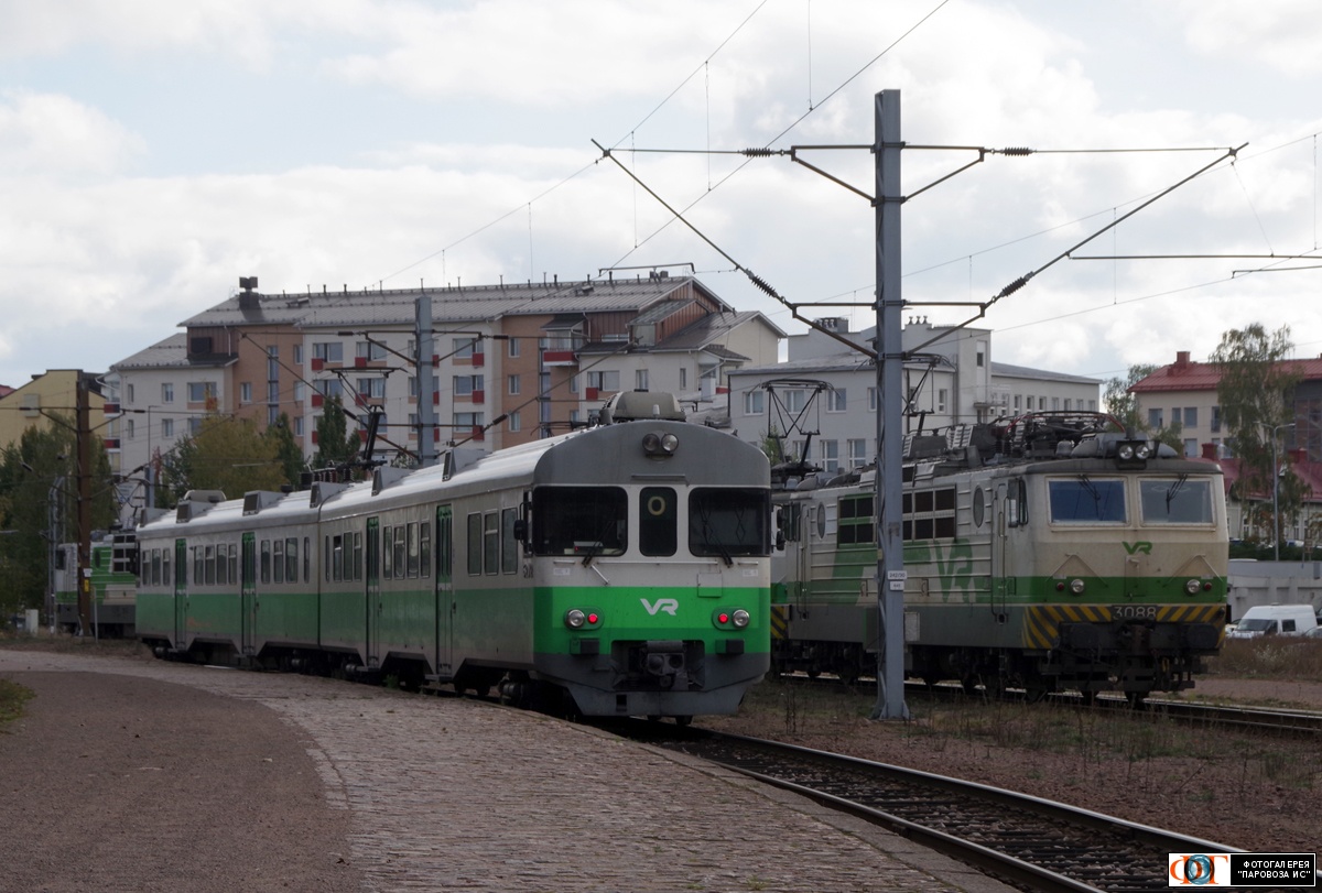 | Электропоезд Sm2-6072 и электровоз Sr1-3088, ст. Котка (Kotka), Кюменлааксо, Финляндия Автор: tallart | Фото сделано 30.IX.2025, опубликовано 22.X.2025.