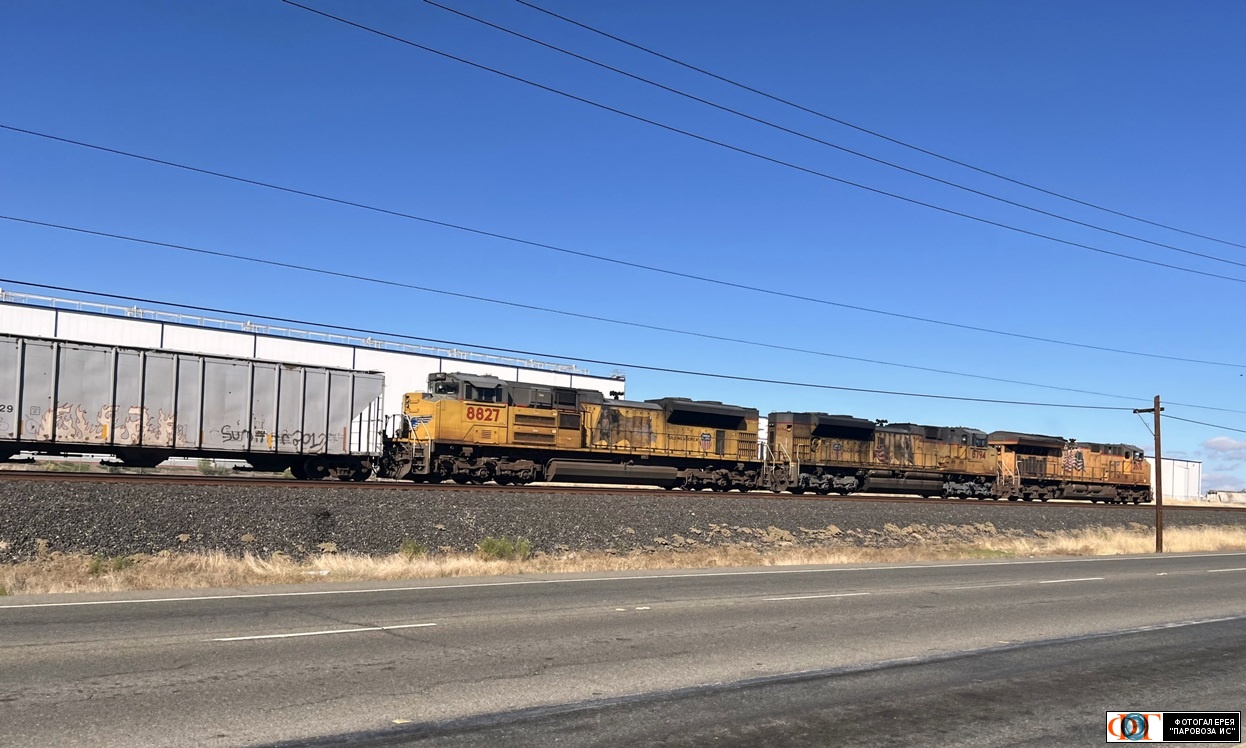 | Тепловозы компании Юнион Пасифик C45AH (UP2676), SD40ACe (UP8794) и SD70AH (UP8827) с грузовым поездом на перегоне Сакраменто - Роузвилл, США/Калифорния Автор: Ярмолюк Сергей | Фото сделано 27.X.2025, опубликовано 5.XI.2025.