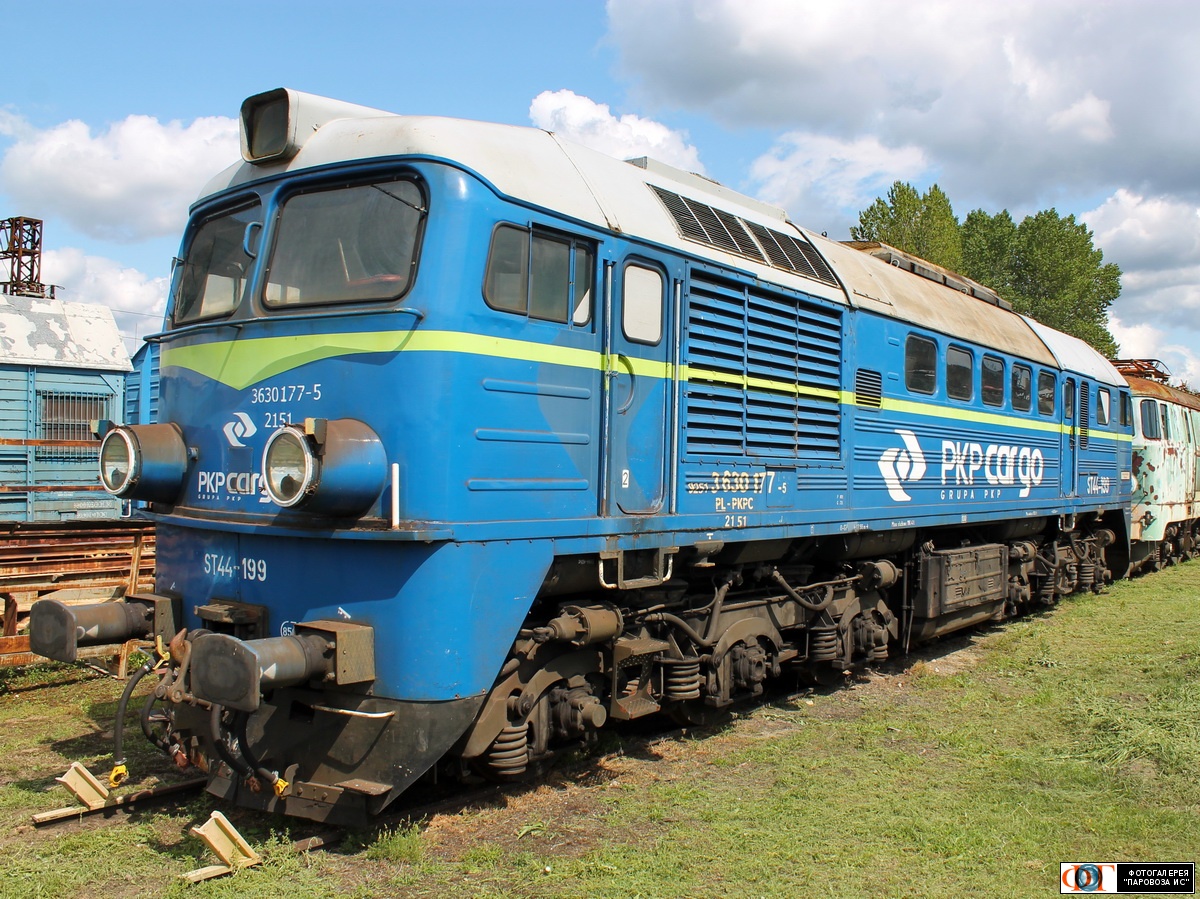 | Отставленный от работы тепловоз ST44-199 на путях депо ст. Белосток, Польша Автор: Ал | Фото сделано 7.VIII.2025, опубликовано вчера.
