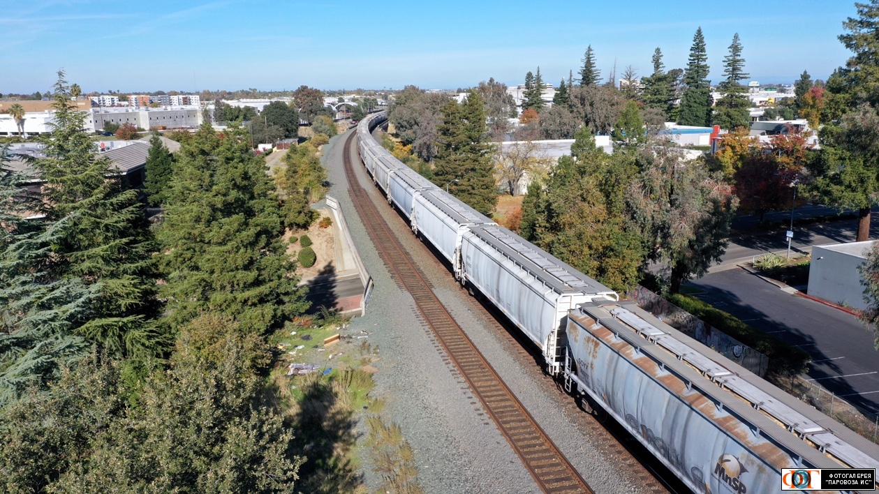 | Грузовой поезд на перегоне Сакраменто - Роузвилл, США/Калифорния Автор: Ярмолюк Сергей | Фото сделано 8.XI.2025, опубликовано сегодня.