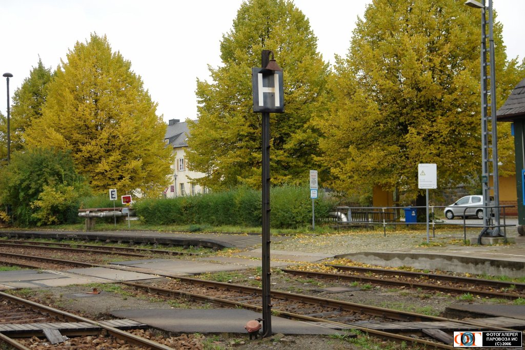 | Железнодорожный знак "Остановка" { Halt sign }, Бад-Лобенштейн { Bad Lobenstein }, Германия/Тюрингия Автор: Сергей Остапенко / Sergej Ostapenko | Фото сделано 23.X.2006, опубликовано 27.X.2006.