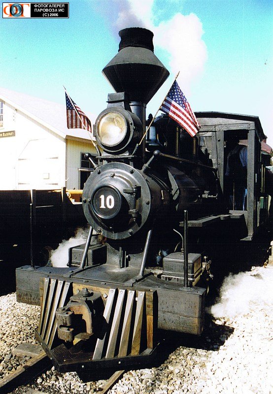 | Паровоз № 10, узкоколейная железная дорога "Уискассет, Уотервиль и Фармингтон", США/Мэн Автор: Зиновьев Д. | Фото сделано X.2001, опубликовано 19.XI.2006.