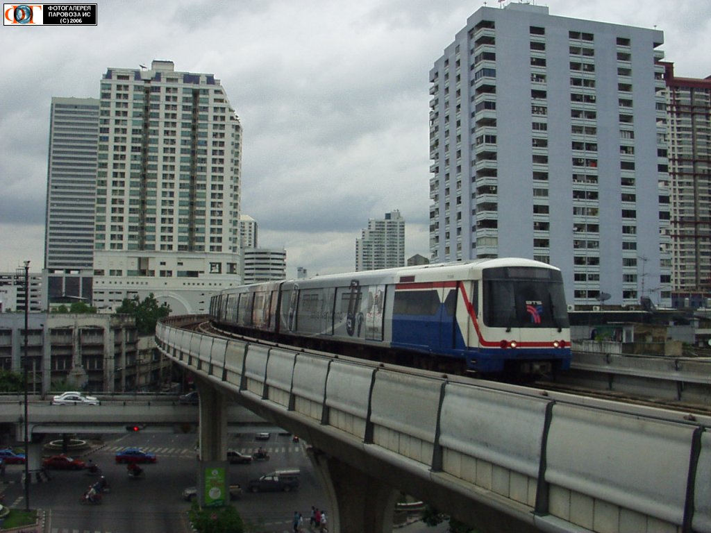 | Поезд "Скайтрейна" прибывает на станцию "Ратчатхеви", Бангкок, Таиланд Автор: Сергей Рублёв | Фото сделано 12.VIII.2005, опубликовано 27.XI.2006.
