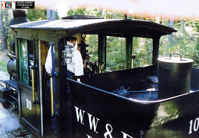 | Паровоз номер 10, узкоколейная железная дорога "Уискассет, Уотервиль и Фармингтон", США/Мэн Автор: Зиновьев Д. | Фото сделано X.2001, опубликовано 29.XI.2006.