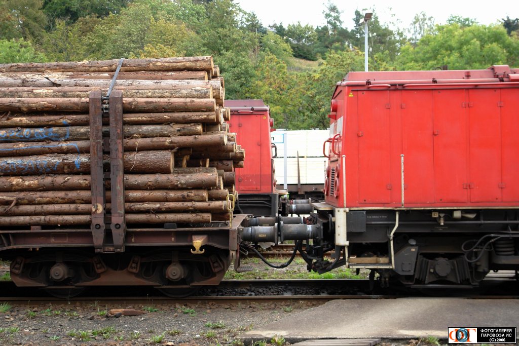 | Сцепка тепловоза BR 204 с платформой, Бад-Лобенштейн, Германия/Тюрингия Автор: Сергей Остапенко / Sergej Ostapenko | Фото сделано 1.X.2006, опубликовано 1.X.2010.