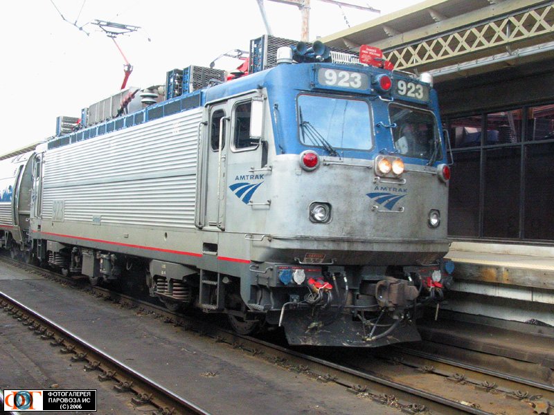 | Электровоз АЕМ7-923 с региональным поездом на ст. Уилмингтон; Electric Locomotive AEM7-923 with a Regional train in Wilmington, США/Делавер Автор: Женя | Фото сделано 10.III.2006, опубликовано 8.II.2007.