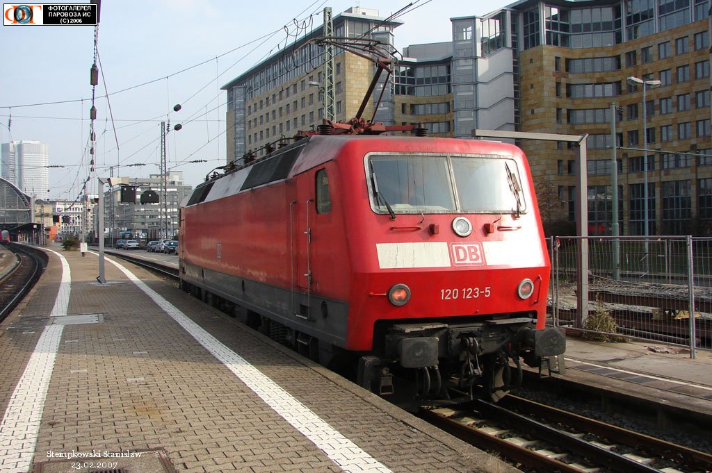| Электровоз BR 120.123-5, Франкфурт-на-Майне, главный вокзал, Германия/Гессен Автор: Стемпковский С. | Фото сделано 23.II.2007, опубликовано 6.III.2007.