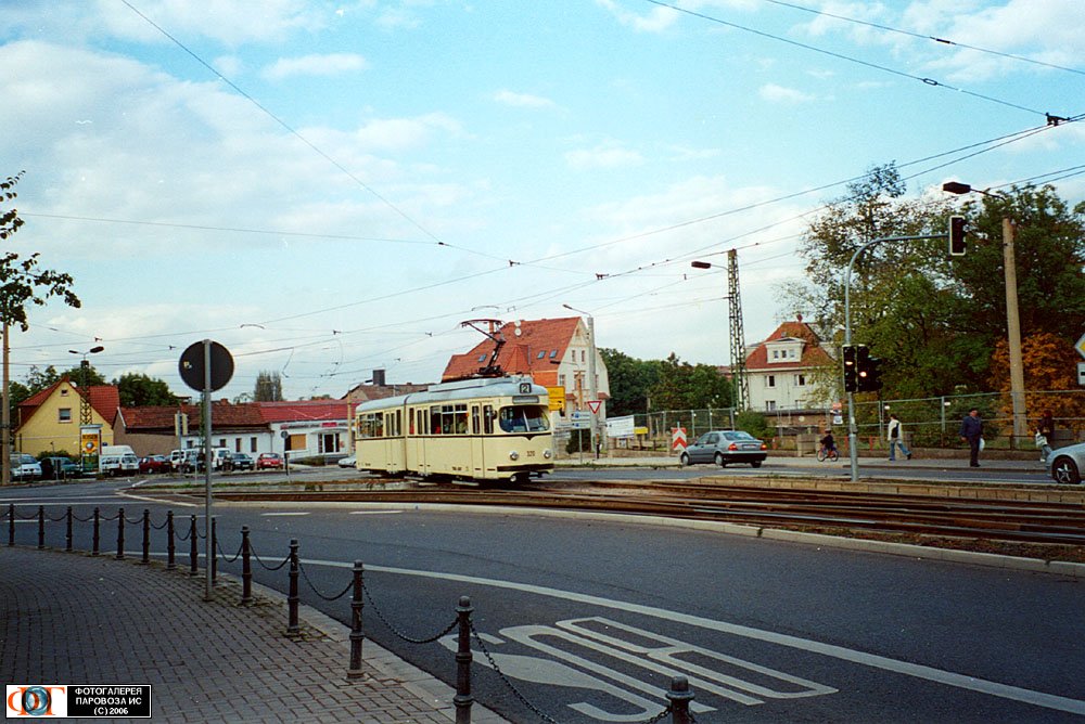 | Трамвай Düwag GT6-320, перекрёсток Херсдорфштрассе и Хуттенштрассе, г. Гота, Германия/Тюрингия Автор: Vladislav Prudnikov | Фото сделано 14.X.2002, опубликовано 28.III.2007.